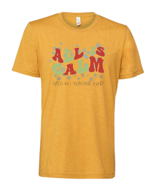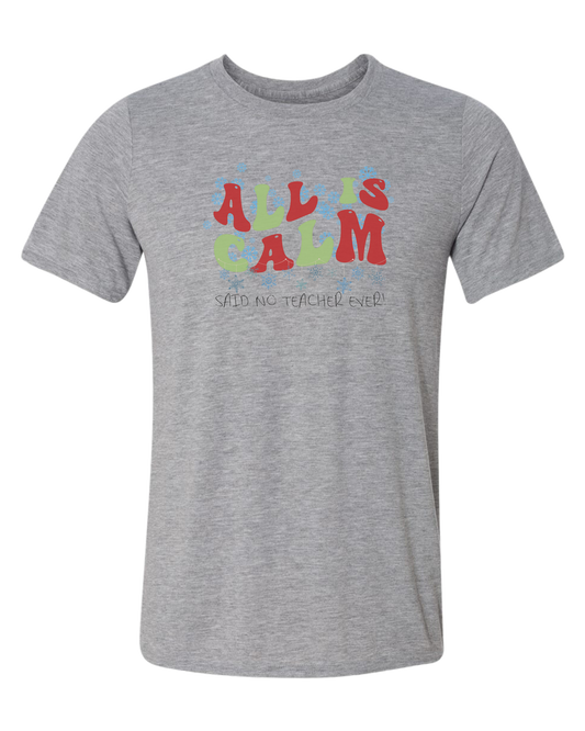 Christmas "All is Calm" teacher design Unisex crewneck graphic tee