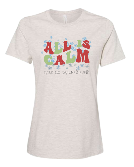 Christmas "All is Calm" teacher design Women's fit premium crewneck tee