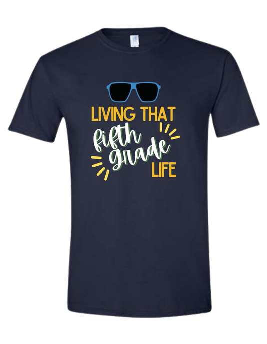 Customizable "Living that" grade level unisex crew-neck tee