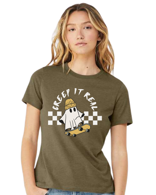 Creep it Real skater ghost graphic tee Women's fit premium crewneck tee