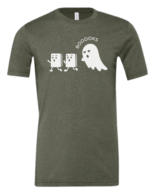 Ghost chasing Boooo-ks graphic tee Unisex crew-neck graphic tee