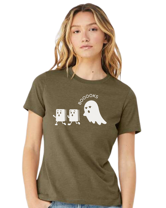 Ghost chasing Boooo-ks graphic tee Women's fit premium crewneck tee