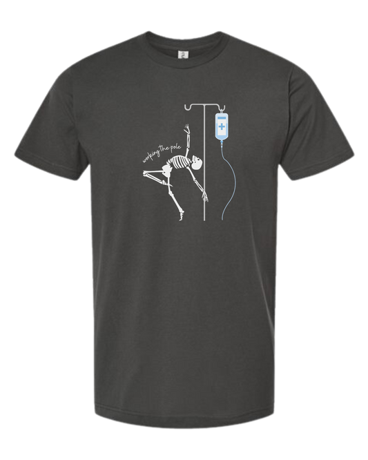 Unisex crewneck "Working the Pole" nursing skeleton graphic tee