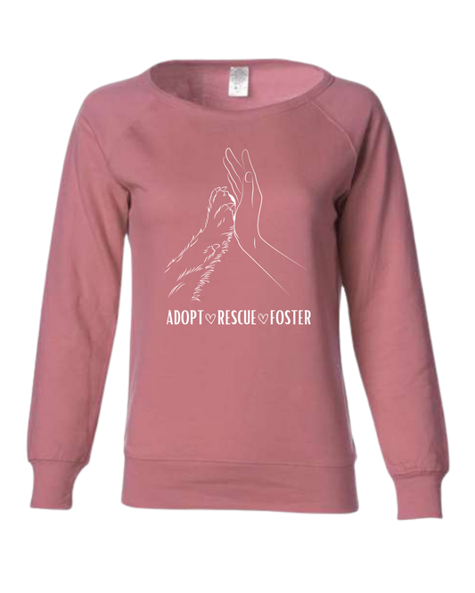Women's fit "Adopt, Rescue, Foster" human & paw high five graphic