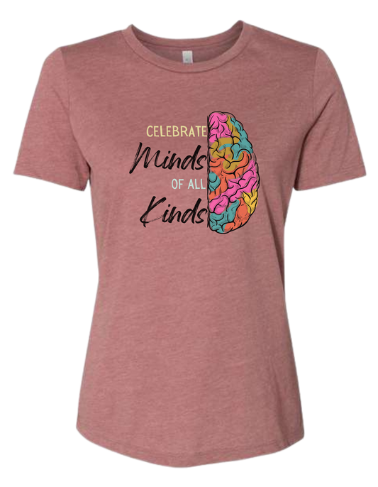 Women's fit "Celebrate Minds of All Kinds" full color tee