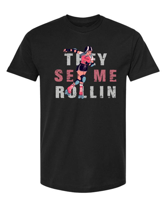 Unisex crew-neck short sleeve "They see me rollin" skater girl tee