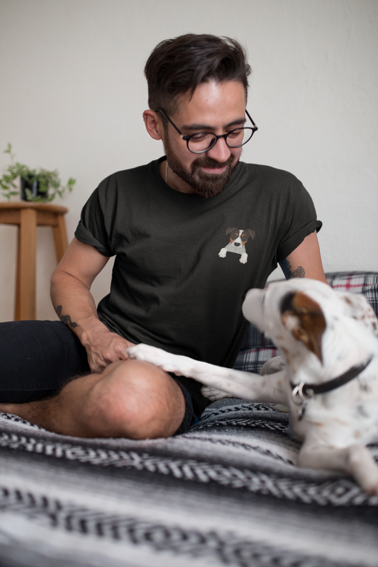 Unisex Crewneck pocket tee w/puppy peaking out