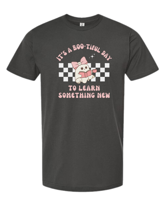 "It's a BOO-tiful Day to Learn Something" cute ghost graphic Unisex crew-neck graphic tee