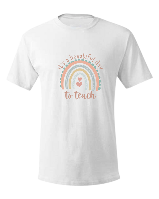 "It's a Beautiful Day to Teach" Rainbow graphic Unisex crewneck graphic tee (light colors)