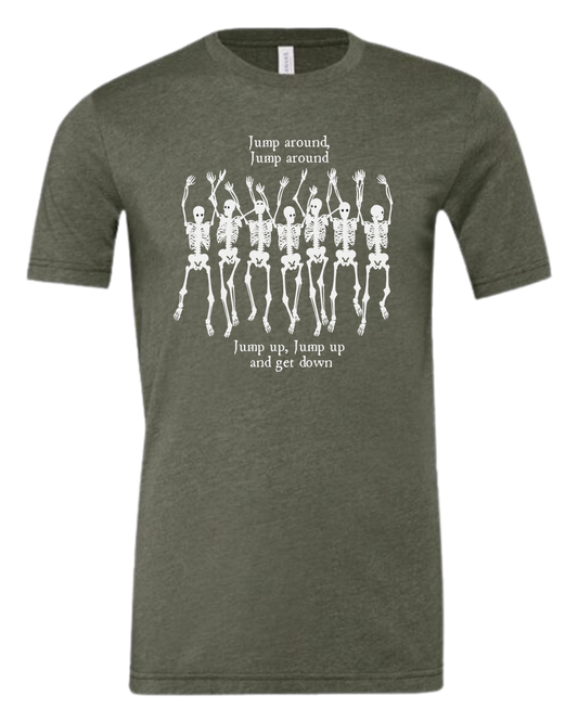 "Jump Around" Skeleton tee Unisex crew-neck graphic tee