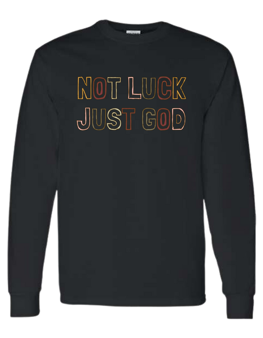 "Not Luck Just God" outline font graphic