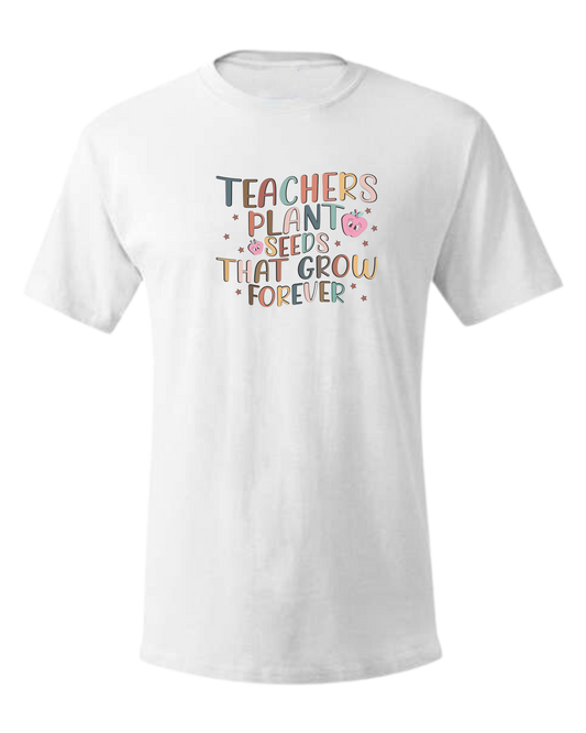 "Teachers Plant Seeds that Grow Forever" design Unisex crewneck graphic tee
