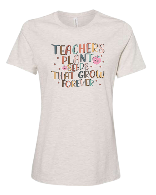 "Teachers Plant Seeds that Grow Forever" design Women's fit premium crewneck tee