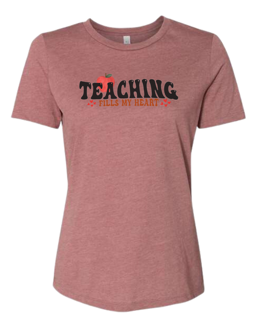 "Teaching Fills my Heart" graphic tee Women's fit premium crewneck tee