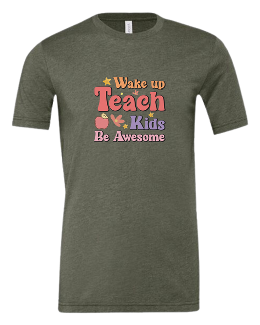 "Wake up, Teach Kids, Be Awesome" design Unisex crewneck graphic tee