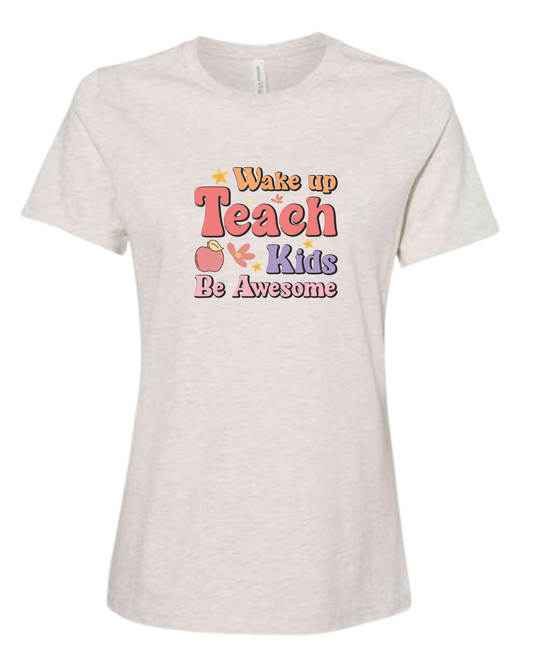 "Wake up, Teach Kids, Be Awesome" design Women's fit premium crewneck tee
