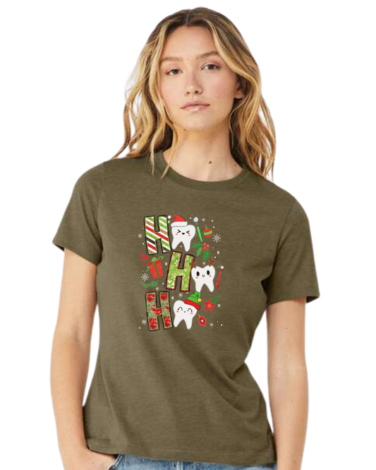 "HO HO HO" cute Christmas teeth design Women's fit premium crewneck tee