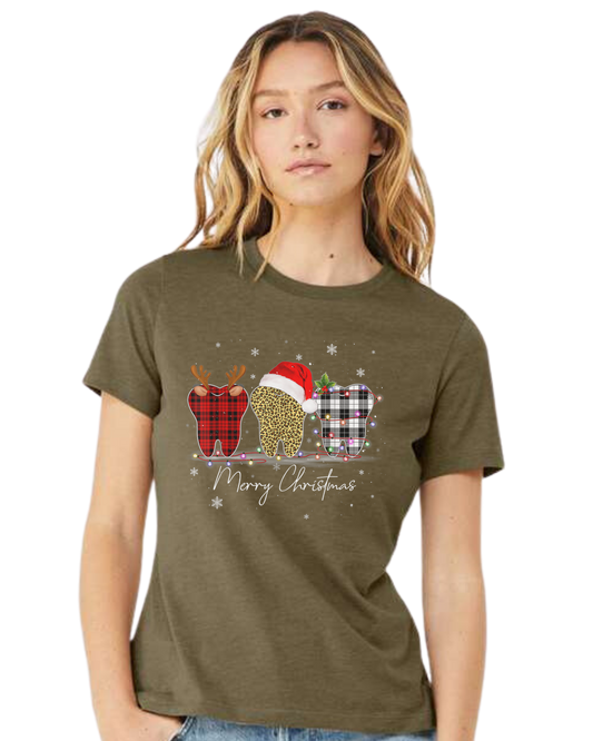 "Merry Christmas" dental graphic tee Women's fit premium crewneck tee