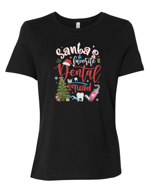 "Santa's favorite dental Squad" graphic Women's fit premium crewneck tee