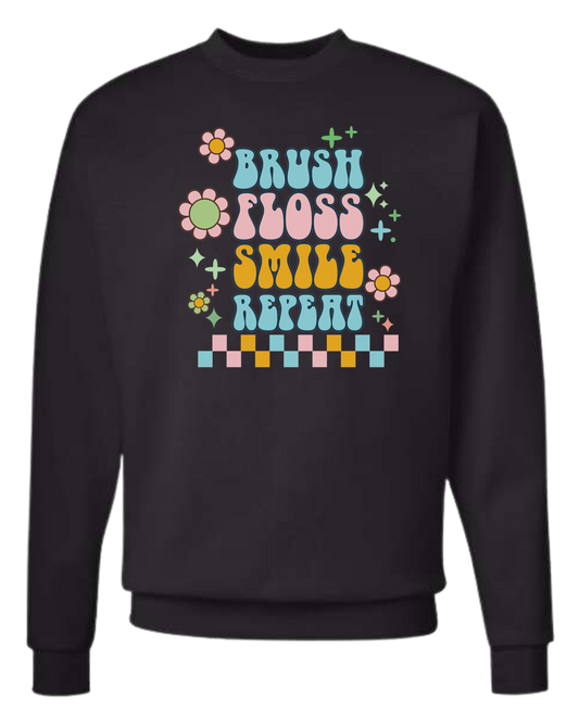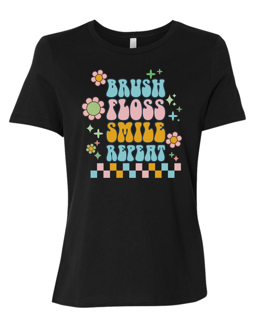 Groovy "Brush, Floss, Smile, Repeat" graphic Women's fit premium crewneck tee