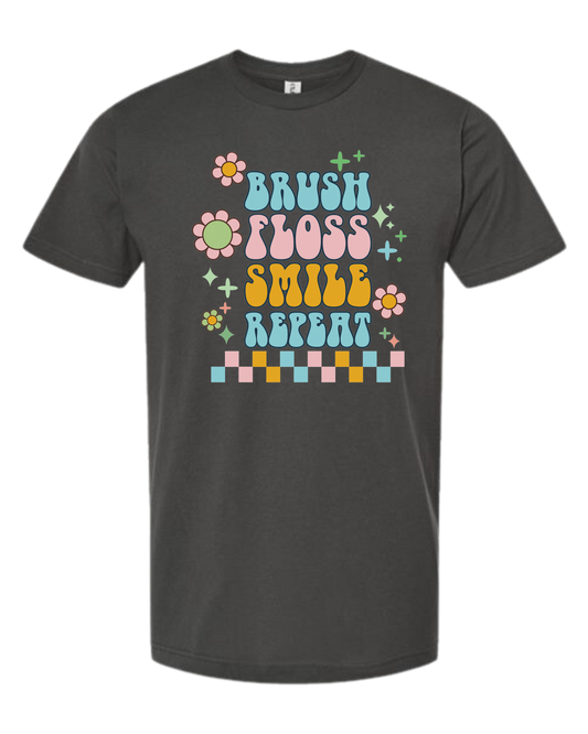 Groovy "Brush, Floss, Smile, Repeat" graphic Unisex crew-neck graphic tee