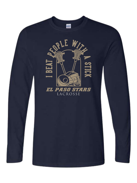 El Paso Stars Lacrosse "I beat people with a stick" classic navy unisex crewneck tee