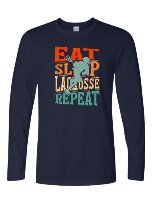 EAT. SLEEP. LACROSSE. REPEAT. distressed classic navy unisex crewneck tee